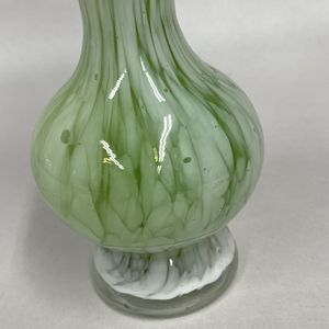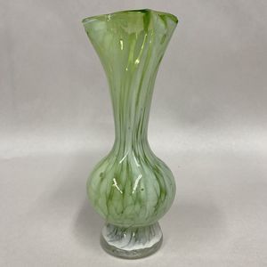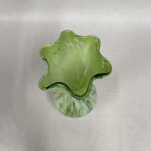 Art Glass Vase Hand Blown Green White Ruffled Rim Small 6.5" Tall Decor Flowers
