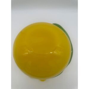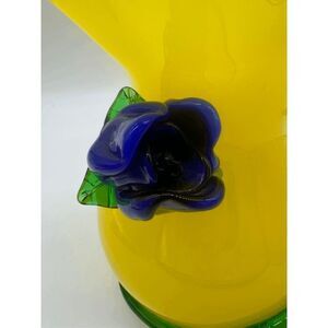 Art Glass Vase Large with Rose Hand Blown Glass Murano Style Yellow w/ Blue Ros