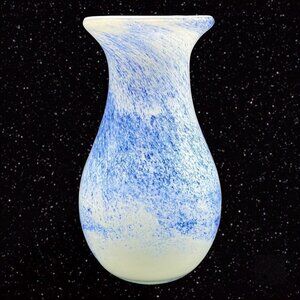Art Glass Vase Splashed Multicolor Dots Blue White Cased 8”T 3.5”W