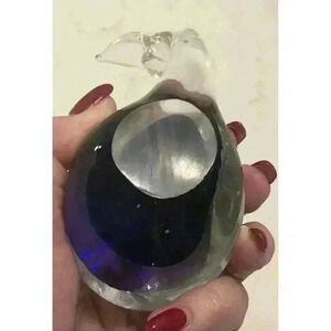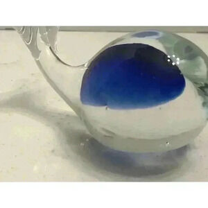 Art Glass Whale Paperweight Clear Cobalt Blue Inside Tail Up for Good Luck