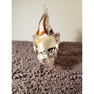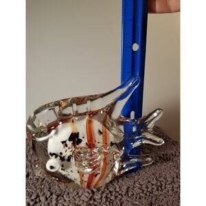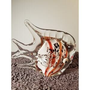 Art Glass White Orange Striped Angel Fish Googly eyes Paper weight‎ 6x5 Inches