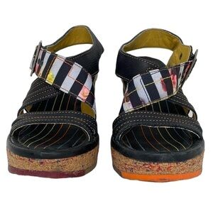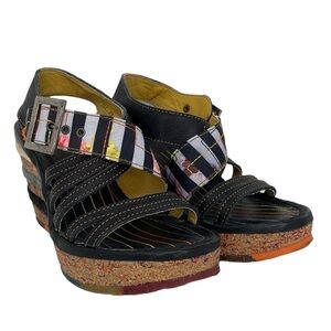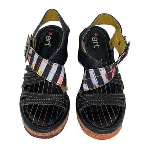Art Heel Womens 8.5 Black Colorful Shoes Pumps Eclectic Bohemian Open Toe