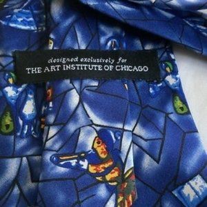 Art Institute Of Chicago Mens Tie Blue Stained Glass Angle Designed Exclusively