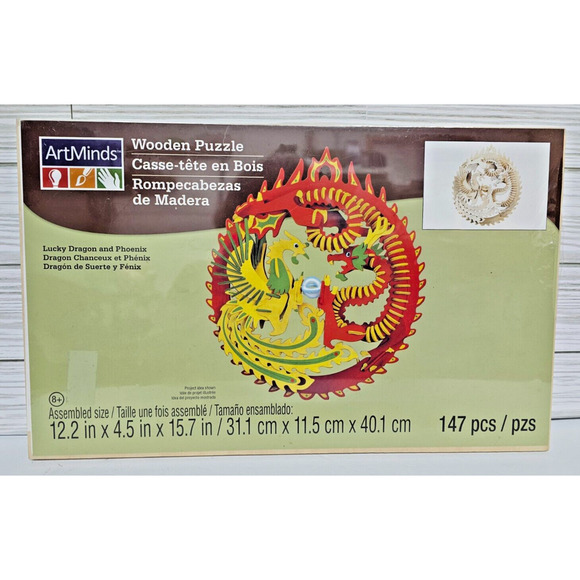 Art Minds Wooden 3-D Puzzle Kit Lucky Dragon & Phoenix Dragon 147 Pcs 8+ New