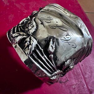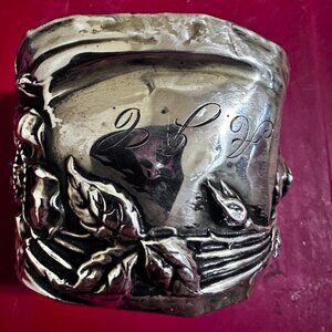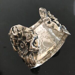 Art Nouveau Cuff Bracelet Floral Solid Sterling Silver 925 Antique Large