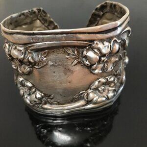 Art Nouveau Cuff Bracelet Floral Solid Sterling Silver 925 Antique Spoon Ring