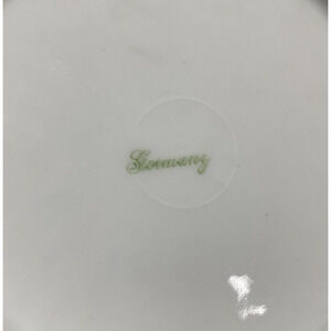 Art Nouveau style signed Germany dessert or bread plates - matching set of 6 done in pink & yellow flowers and golden rim highlights. Pretty pink and green border design - very romantic - perfect for a tea party, desserts, canapes or the like. Sadly there is a small chip on the front rim of one plate (see last pic) - other than that this set is in excellent vintage condition and ready to use.