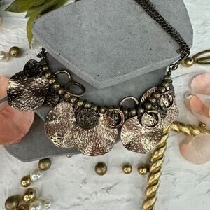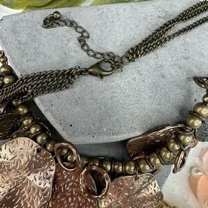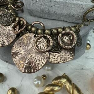Capture the essence of Art Nouveau elegance with this exquisite bib necklace. A symphony of vintage charm and modern allure, this piece features a brass metal base adorned with intricate details. The multicolor palette is accented by touches of silver and gold, creating a stunning contrast that's sure to turn heads. A secure lobster closure ensures this necklace sits perfectly at your collarbone, adding a touch of sophistication to any outfit. Whether you're dressing up for a night out or adding flair to your daytime ensemble, this necklace is a timeless addition to your jewelry collection. Gently pre-owned, it awaits its next story with you.