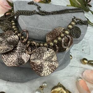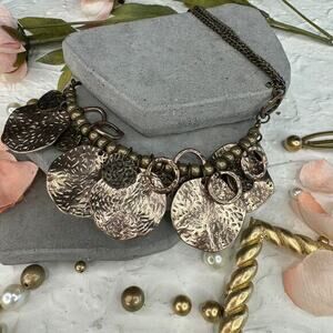 Art Nouveau Inspired Bib Necklace Two-Tone Brass Silver Gold Vintage Elegance