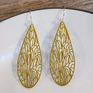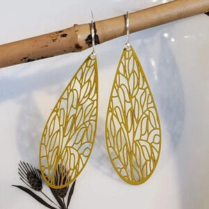Elevate your style with these stunning Art Nouveau inspired teardrop earrings. The delicate lacy filigree design is handcrafted from hand enameled brass and is super lightweight, giving these earrings a unique and timeless look.