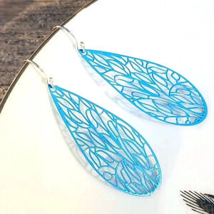 Elevate your style with these stunning Art Nouveau inspired teardrop earrings. The delicate lacy filigree design is handcrafted from hand enameled brass and is super lightweight, giving these earrings a unique and timeless look.