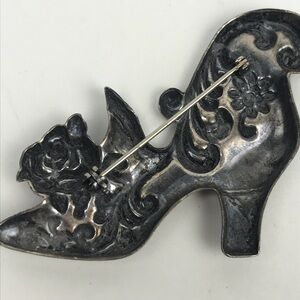 Art Nouveau Sterling 925 Repousse High Heel Brooch