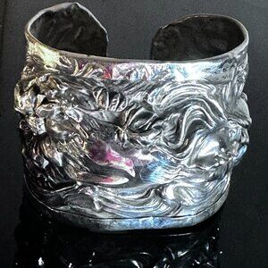 Art Nouveau Sterling Silver 925 Cuff Bracelet Lady Face Floral Alphonse Mucha