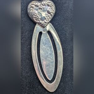 Art Nouveau Sterling Silver Ornate Repousse Heart Bookmark - Book Lovers Gift