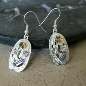 Elegant silver plated pewter oval dangles and silver plated brass earring hooks