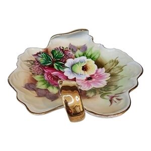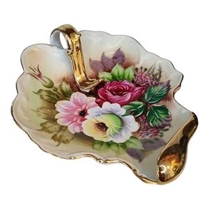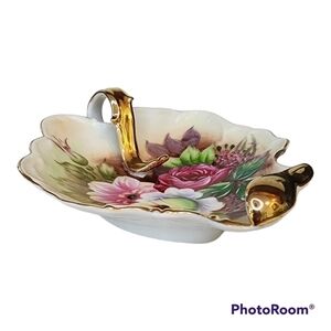 Art Nouveau Style Cabbage Roses Handpainted Dish Nappy Dish Gold Gilding EUC.