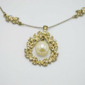 Art Nouveau Style Faux Pearl Clear Rhinestone