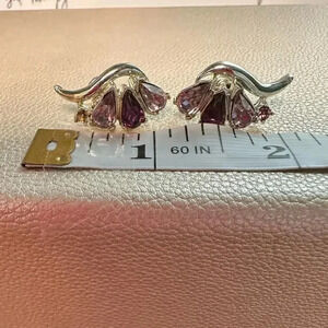 Vintage Earrings from the Art Nouveau Era. Screwback earrings. The use of purple stones and sweeping curves suggest the Art Nouveau era giving the earrings an elegant, flowing appearance.