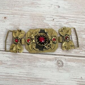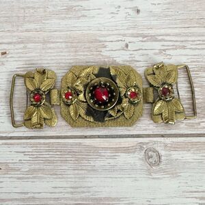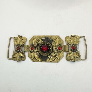Art Nouveau Vintage Antique Bohemian Czech Garnet Red Glass Brass Sash Buckle