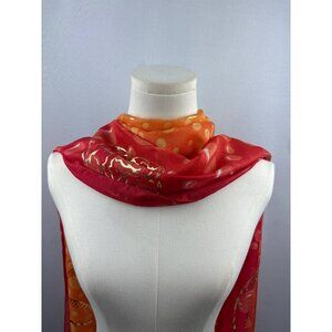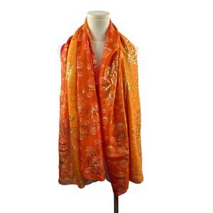 Art Of The Scarf Womens Silk Blend Orange & Red Oceanic Print Scarf