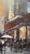A set of prints of Brent Heighton paintings titled "Paris Boulevard". Each painting measures 12" wide by 24" long & really looks like its oil or acrylic on canvas, but it is actually a print. The paintings are stretched on wooden frames.
