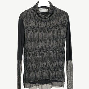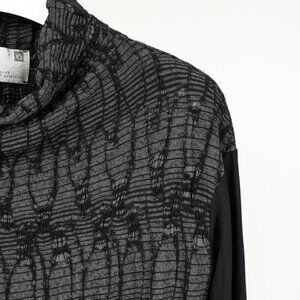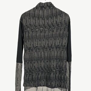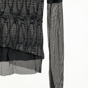 Art Point Black Grey Abstract Design Mesh Detail Long Sleeve Top