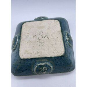 Art Pottery 5” Trinket Dish Bowl Rustic Blue 3D Sand Dollar Ceramic Signed