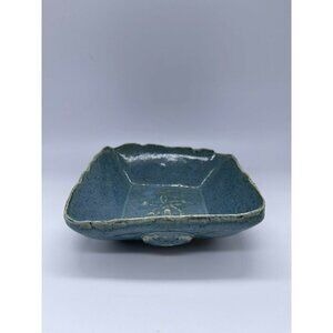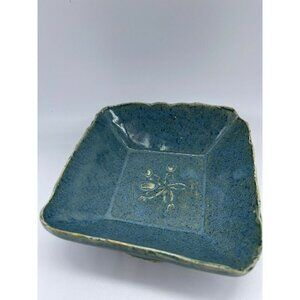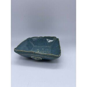 Art Pottery 5” Trinket Dish Bowl Rustic Blue 3D Sand Dollar Ceramic.
