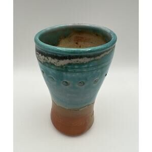 Art Pottery Blue & Brown Glazed 5” Tumbler Cup Artist Signed
