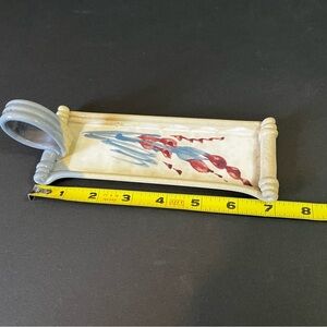Art Pottery Butter Stick Dish Tray Handled Glazed Rolled Loop Incense Pottery