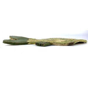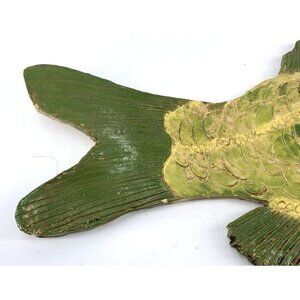 Art Pottery Fish Decor 13" Signed Meg Green Yellow Hand Crafted
