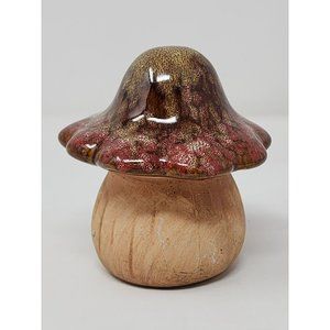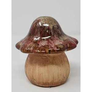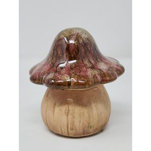 Art Pottery Mushroom Figurine Maroon Brown Drip Glaze