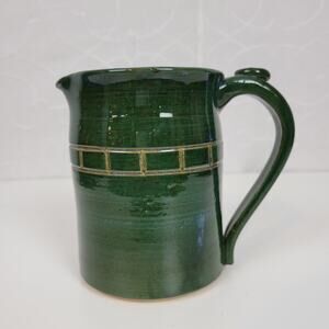 Art Pottery Pitcher Vase 4.75" tall Green Ceramic Mid Century Modern