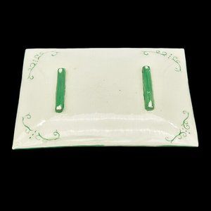 Art Pottery Poppy Flowers & Butterfly Rectangle Plate Platter Ceramic Hand Painted on Both Sides 11” x 7”. Clean and Beautiful! No cracks, utensil scratching or repairs. 2 corners have small glaze chips as seen in photos. Please zoom in on all photos for full details. All items are thoroughly cleaned, stored in a smoke-free, cat-free home, and will be packed with great care to ensure a safe arrival to their new home. Thanks For Stopping By!
