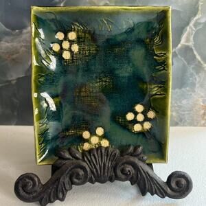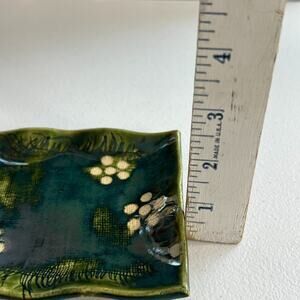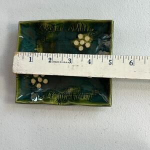 This set of 5 cake plates is a beautiful example of Japanese Meji period art pottery, featuring a square shape and a glossy green finish. Handmade from stoneware and ceramic, these decorative plates showcase an Asian style with a floral theme, perfect for all occasions. The vintage pieces have a rustic charm and are crafted with care instructions to hand wash only, making them a unique and stylish addition to any home or kitchen decor.