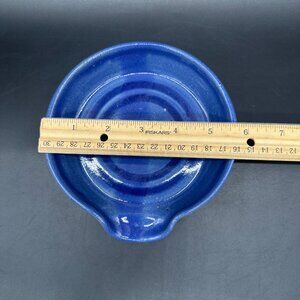 Art Pottery Spoon Rest Blue Round Kitchen Accessory Utensil Holder Stove Top
