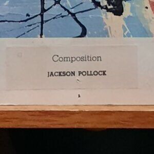 Art print of Jackson Pollock's "Composition". Classic Pollock movement! Vertical image. Overall dimensions are approx. 20.5"w x 26.5"h, image dimensions are approx. 19"w x approx. 24"h. Border edges are a little rough with some minor tears but image a great. Shipped rolled in a tube.