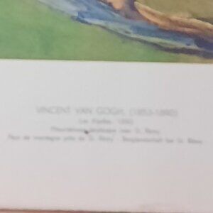 Art print of "Les Alpilles" (Mountainous landscape near St. Remy) by Vincent Van Gogh. Painted in Van Gogh's well known colorful style. Overall size is approx. 21.5"x23", image is approx. 19"x 23" as it only has a bottom border (which has a small rip). In great condition!! Ships rolled in a tube.