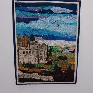 Art Quilt OLD KNIGHT'S CASTLE Wall Art Quilted Wall Hanging Room Decor 17"x13"