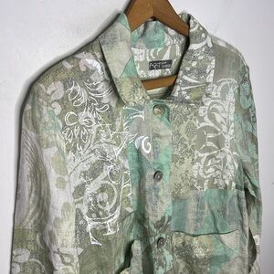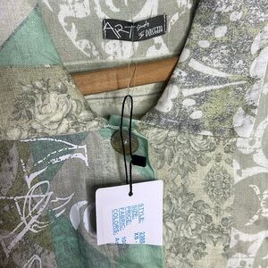Art Simply by Dolcezza 100% Linen Patchwork Floral Button Down Artsy Blouse
