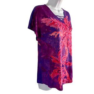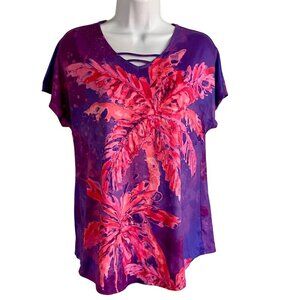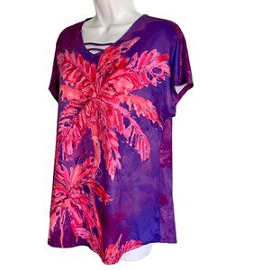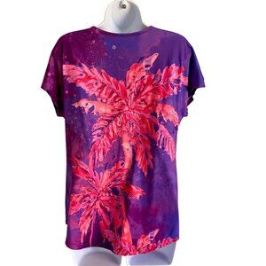 Art & Sol Colorful Double Palm Tree Print Short Sleeve Top Women's Small