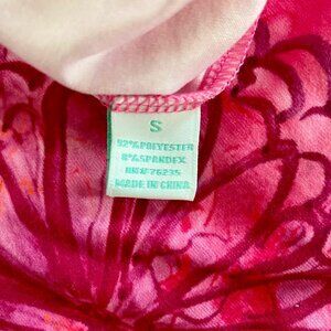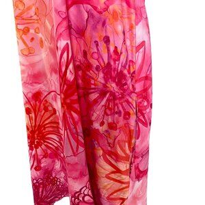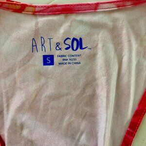 NEW without tags, Art & Sol women's small dress features a vibrant pink and orange floral watercolor print, sleeveless design with scoop neckline, pockets, and racerback styling with peekaboo detail. Made from 92% polyester and 8% spandex.