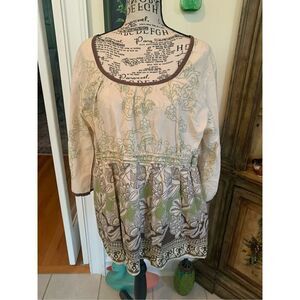 Art and Soul 100% Cotton tan, brown and green tunic. Size large. Good condition
