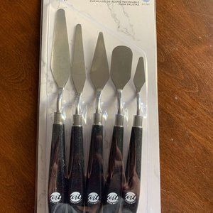 The stainless palette knife set are perfect for mixing your paints, mediums and pigments on your palette. The knives are suitable for oil and acrylic paints and can be used alongside your brushes when applying paint to your project. This 5x11.25x.625 inch package contains five assorted flexible stainless steel palette knives. Imported.