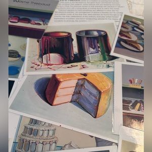 Excellence teaching tool for any art teacher of all ages! This includes one set of Thiebaud laminated postcards. 30 total. And Two identical sets of Monet's Garden Photographs 60 total