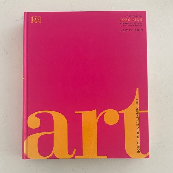 Bright pink cover with bold yellow text. A comprehensive visual guide to art.
