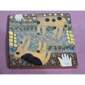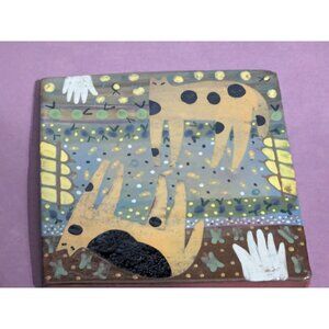 Art Tile w/ Cats Hand Painted and Glazed Tile Folk Art 5x5 in
