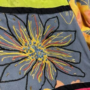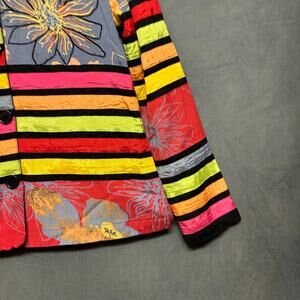 Title: Art To Wear Blazer Patchwork Floral Boho Multicolor Flax Viscose Blend Studded