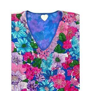 Art To Wear Fairy Floral Colorful Women’s Tunic Top Large Beaded Sequin Bright