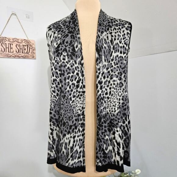 Art and Soul Acrylic Animal Print Sleeveless Cardigan Vest Size Small
